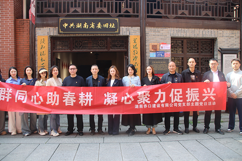 为深入学习贯彻党的二十届四中全会精神,树立和践行正确政绩观,培育和践行社会主义核心价值观,值此清明节来临之际,4月1日,湖南乔口建设有限公司党支部组织全体党员、预备党员、发展对象,开展了“党群同心助春耕,凝心聚力促振兴”4月主题党日活动,前往望城铜官窑古镇参观中共湖南省委旧址,并走进茶亭花海感受乡村振兴成效。
